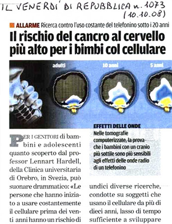 Il rischio del cancro al cervello più alto per i bimbi col cellulare